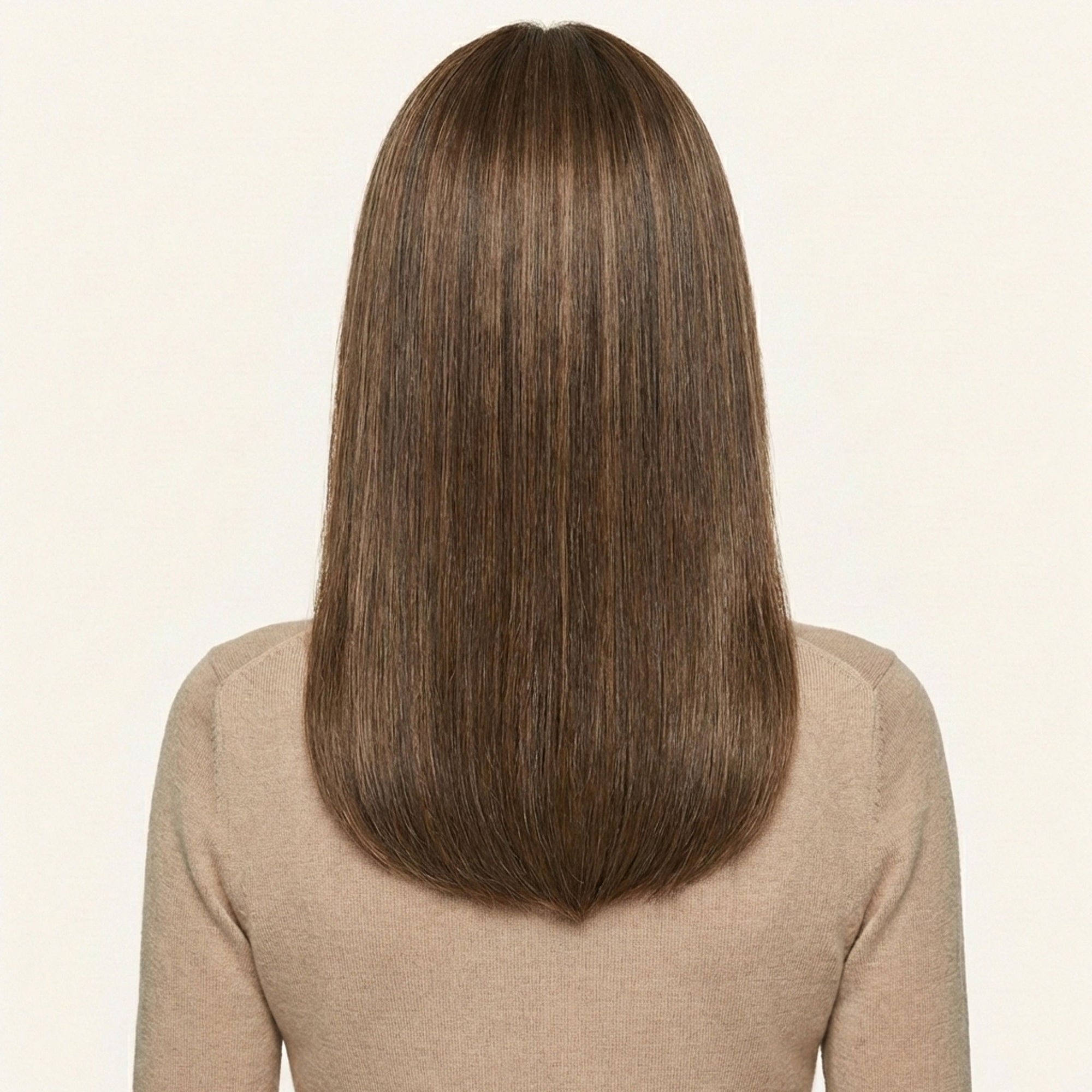 La perruque mi-longue est un choix polyvalent et intemporel, offrant l'équilibre parfait entre la praticité des cheveux courts et l'élégance des cheveux longs. Cette longueur permet une grande variété de coiffures, des looks décontractés aux styles plus sophistiqués, sans la contrainte d'un entretien excessif.